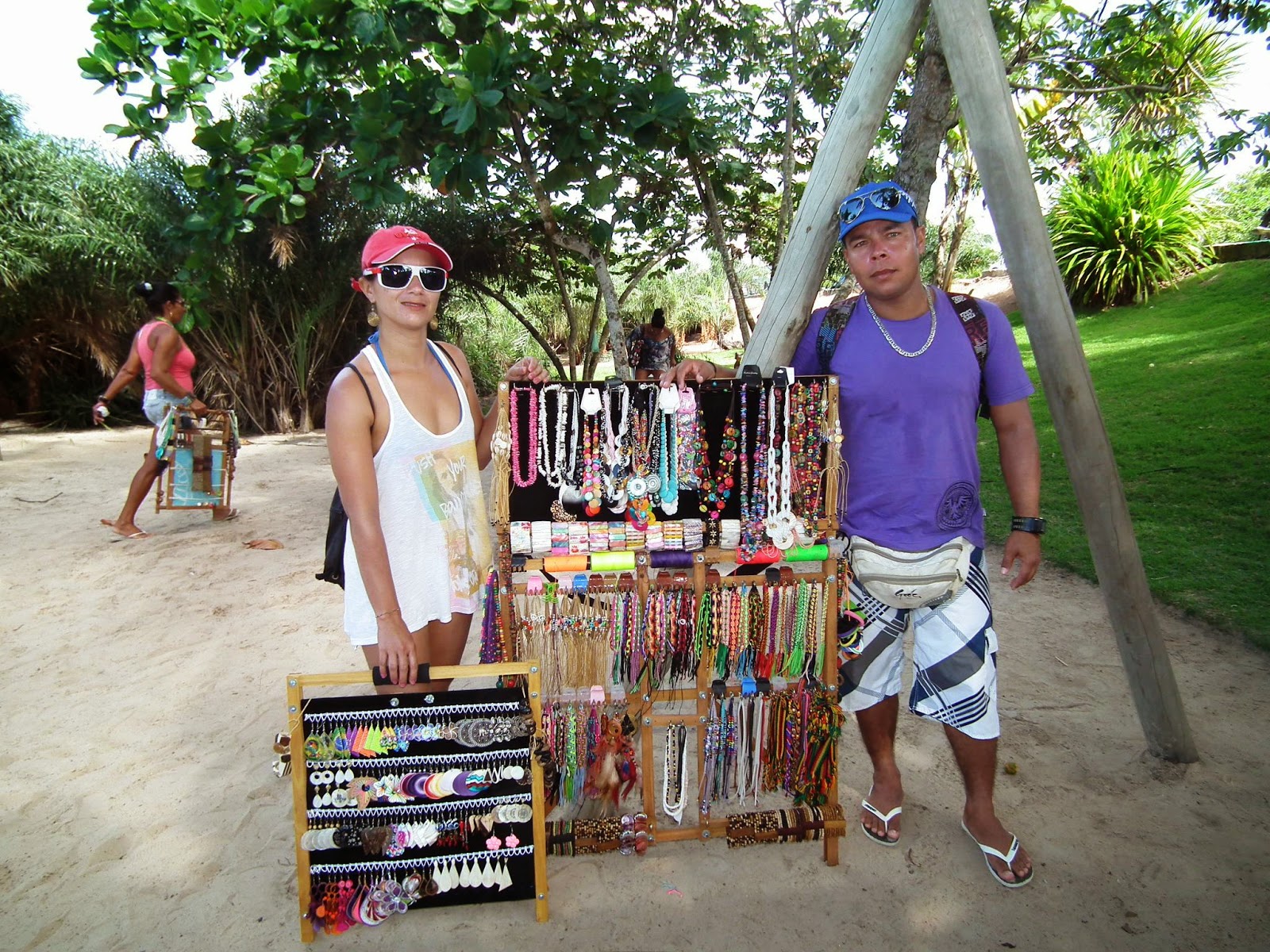 pouco de tudo, de canga a chapéus, um verdadeiro mini shopping na areia,
