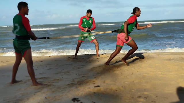 Jogadores trabalharam na praia do Cruzeiro na tarde desta Segunda-feira